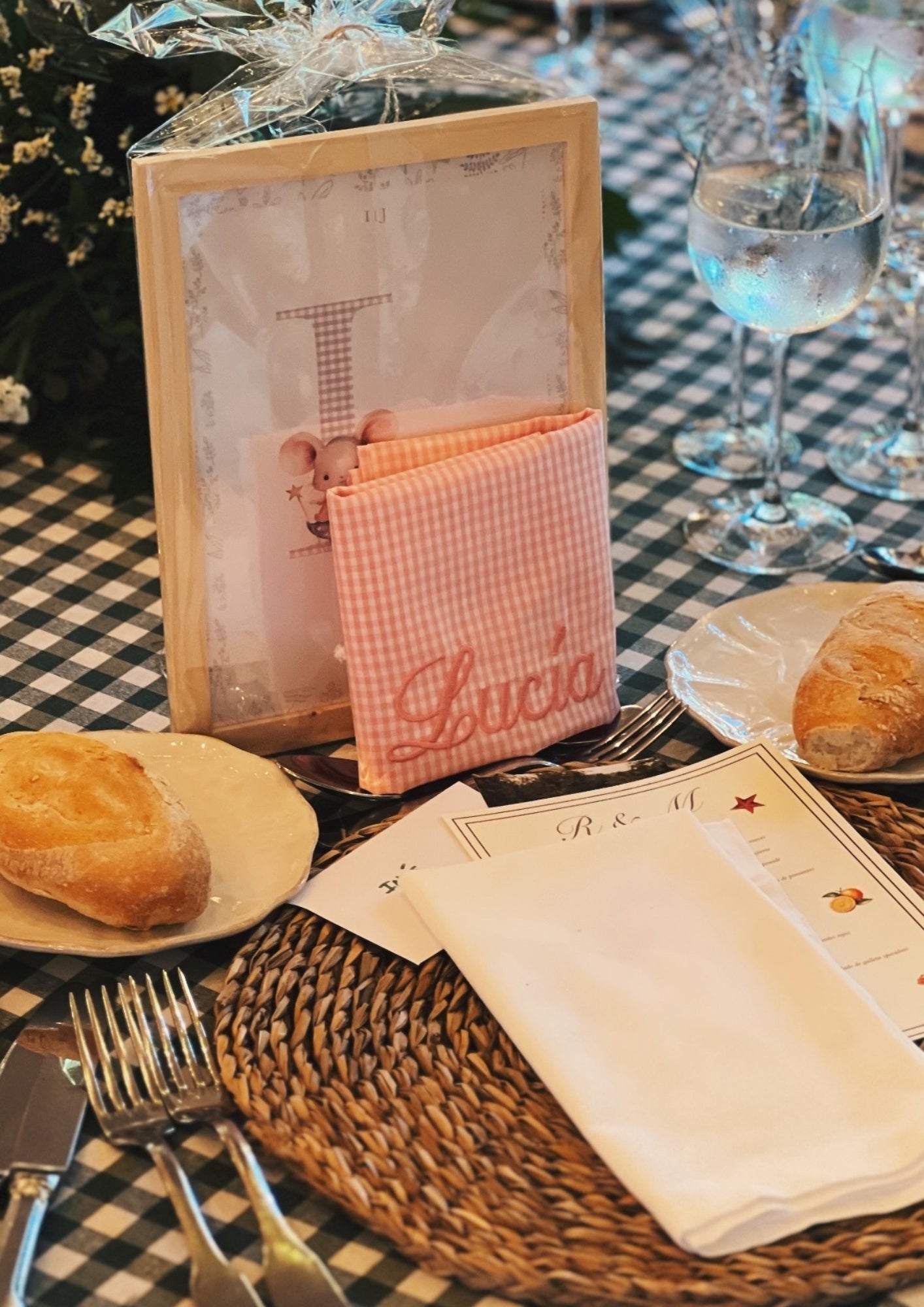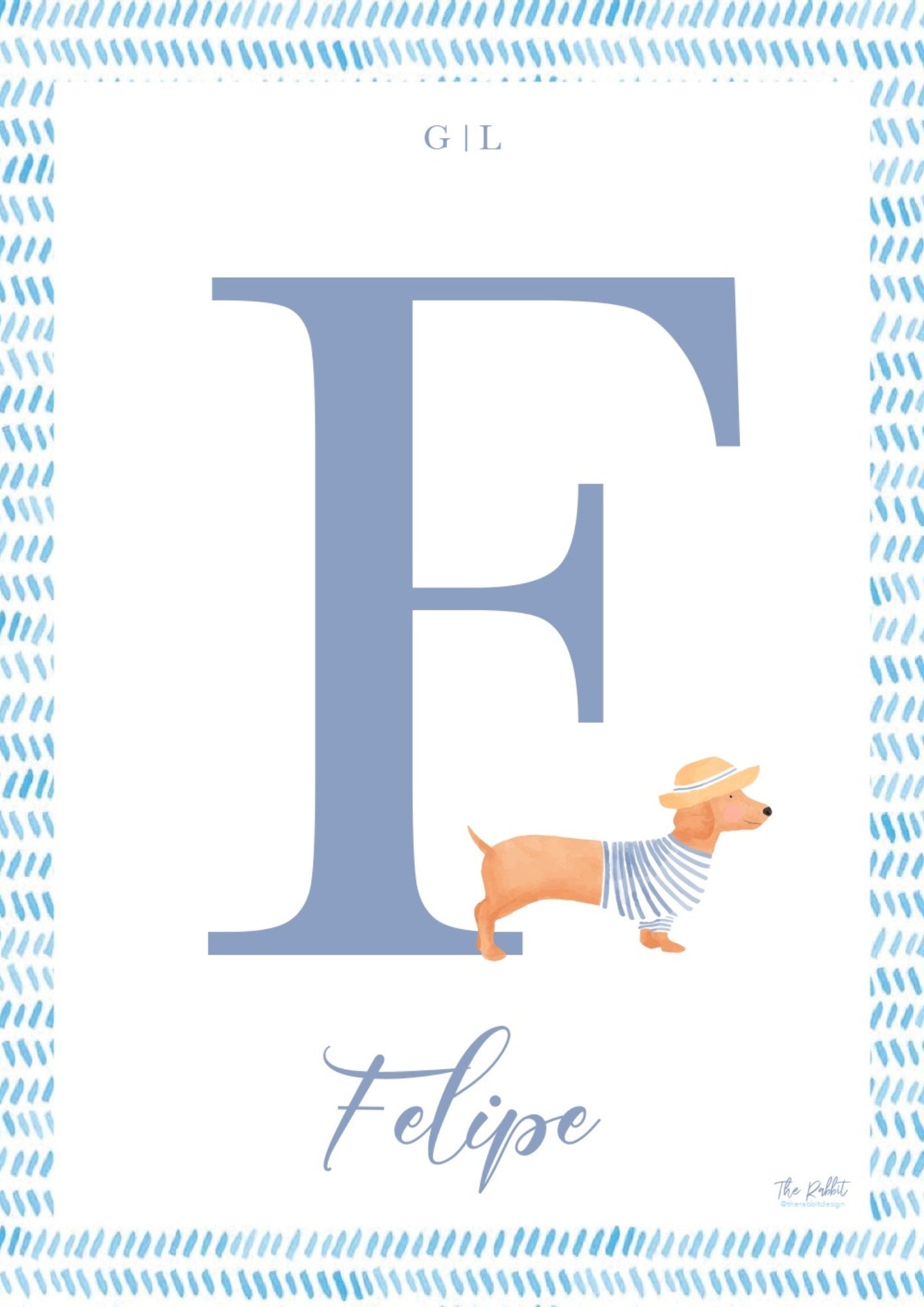 - Envíanos por mail a therabbitdesignstudio@gmail.com la Inicial, Nombre, Fecha y dinos si quieres algún elemento decorativo en concreto.
